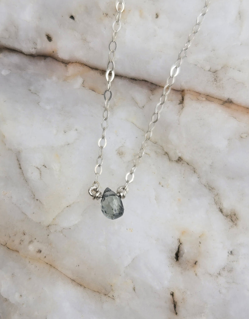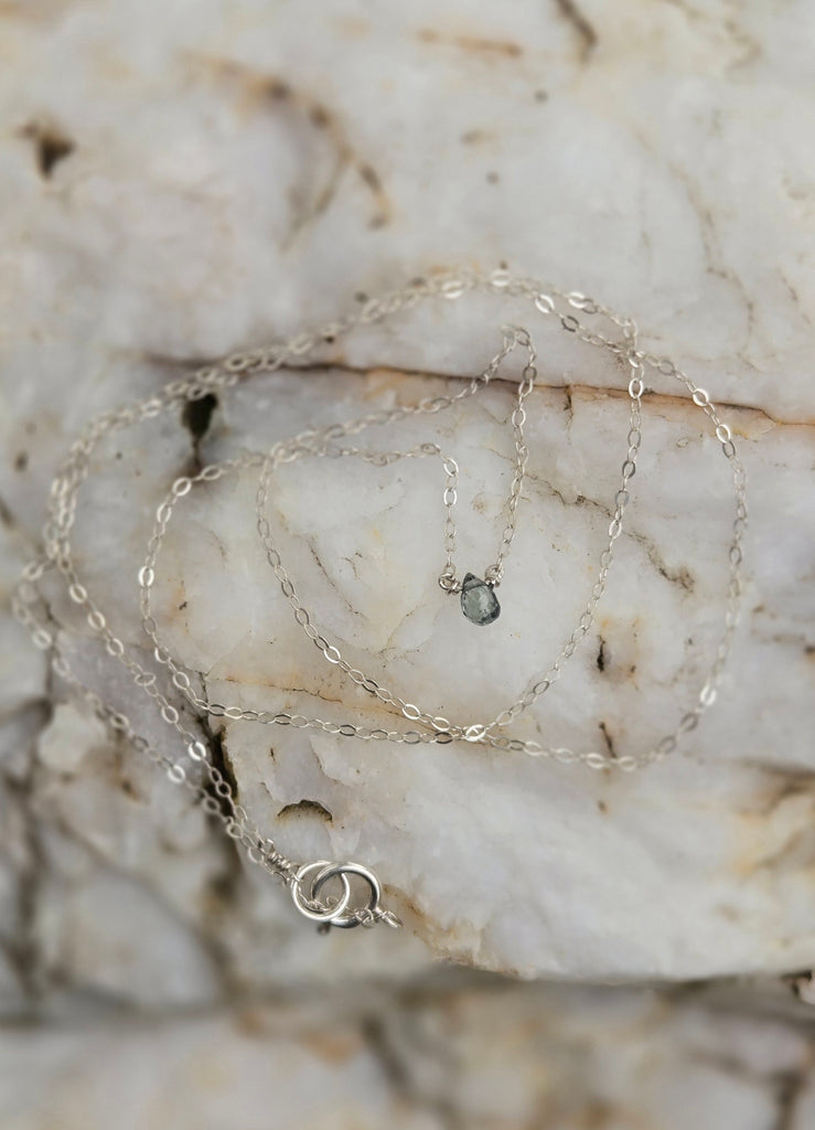 Montana Sapphire Faceted Dainty Briolette Sterling Silver Necklace
